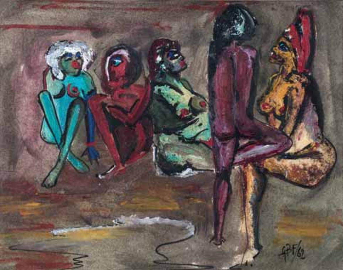 Si scopre poi che non solo nelle dimore della numerosa cerchia familiare ci sono in giro, tra Trento, Rovereto, Venezia, molte opere sue, grafiche e pittoriche, a testimoniare un’attività intensa e appassionata, segnata peraltro da personali e collettive lungo un periodo poco più che ventennale. La personalità di Ferrandi, noto alla cerchia folta degli amici come “Gioppa”, era piuttosto inquieta, attraversata talvolta anche da vera e propria sofferenza.