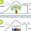 Nella fotosintesi artificiale la luce solare viene in particolare utilizzata per alimentare un dispositivo (la cella foto elettrochimica) dove vengono prodotte cariche elettriche positive e negative che sono in grado di scindere la molecola di acqua nei due elementi che la compongono e cioè l’idrogeno e l’ossigeno. La scissione completa avviene “staccando” un atomo di idrogeno alla volta e quindi attraverso anche la formazione dell’elemento ossigenoidrogeno, O-H. I due atomi di idrogeno alla fine formeranno la molecola H2. L’idrogeno è un combustibile privo di carbonio e il cui utilizzo per produrre energia elettrica e calore restituisce alla fine del processo acqua calda. In questo modo l’acqua che viene inizialmente spezzata ritorna ad esser ricomposta. Ecco allora che il sole e l’acqua insieme costituiscono una fonte di energia rinnovabile che può essere conservata e quindi utilizzabile anche quando il sole non c’è.