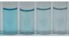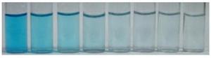 Da sinistra verso destra: graduale purificazione con fotocatalizzatore di acqua contaminata da colorante organico. L’ultima immagine mostra acqua pura.