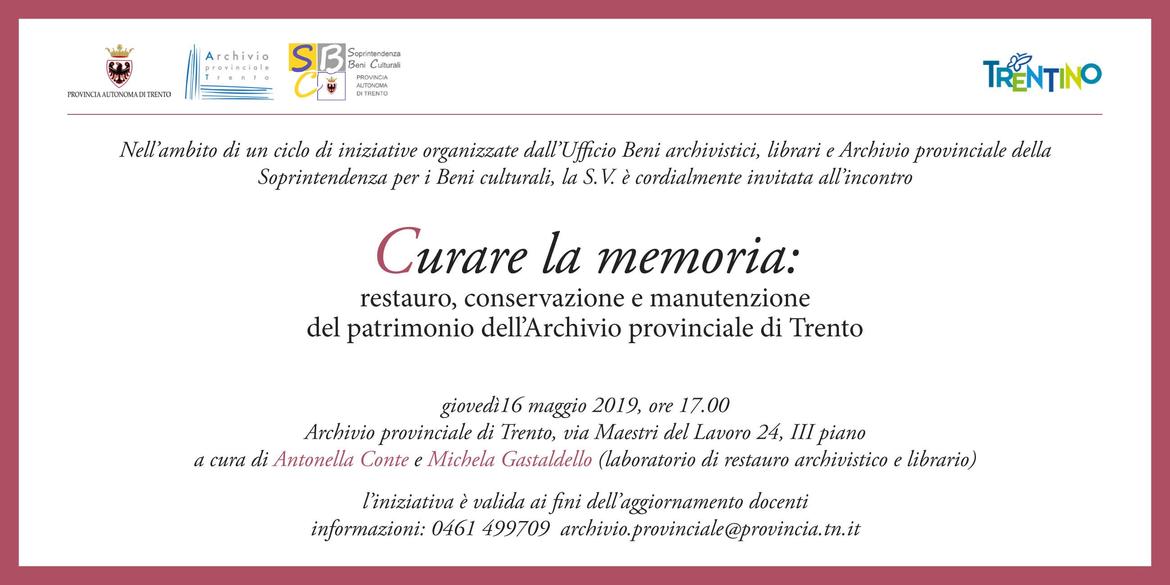 CURARE la memoria : restauro , conservazione e manutenzione del patrimonio dell'Archivio provinciale di Trento