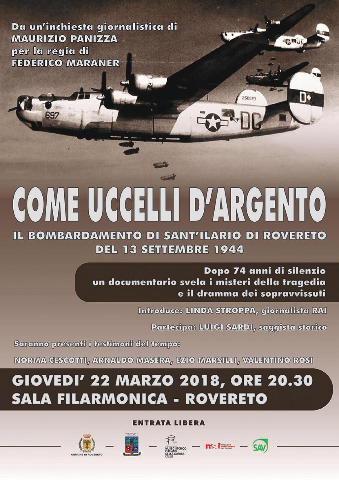 Il 13 settembre del 1944, a Sant’Ilario di Rovereto, un bombardiere americano B24 sganciò in aperta campagna una bomba che piombò su un gruppo di persone - in particolare donne e bambini - che ritenevano di essersi messe al sicuro sotto le vigne. I morti furono 18 e di alcuni di questi non si trovarono più neppure i corpi, disintegrati dall’enorme esplosione.