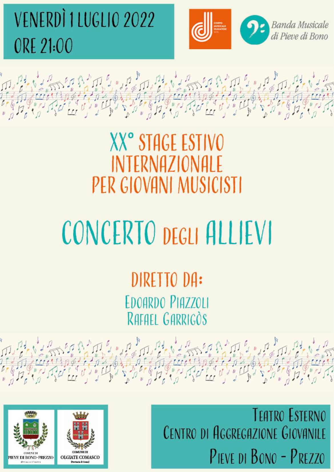 Giunto alla sua ventesima edizione, lo Stage Estivo Internazionale per Giovani Musicisti, raduna ogni estate giovani provenienti da diverse nazioni europee uniti in una formazione musicale che ha tenuto concerti in molte località della provincia di Como, Varese e Milano.