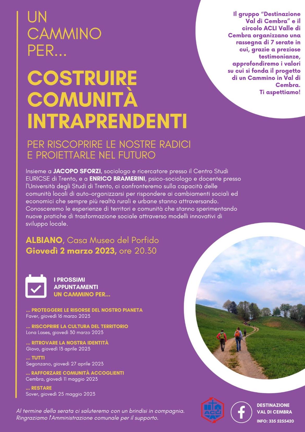 Il primo incontro pubblico avrà luogo giovedì prossimo 2 marzo presso la Casa Museo del Porfido di Albiano e avrà come tema la capacità delle comunità locali di auto organizzarsi per rispondere ai delicati ed impellenti cambiamenti sociali ed economici della nostra epoca. Interverranno Jacopo Sforzi, sociologo e ricercatore presso il Centro Studi EURICSE (Istituto di ricerca europea sulla cooperazione e l’impresa sociale) di Trento e Enrico Bramerini, sociologo presso l’Università di Trento ed esperto di progettazione per comunità sostenibili.