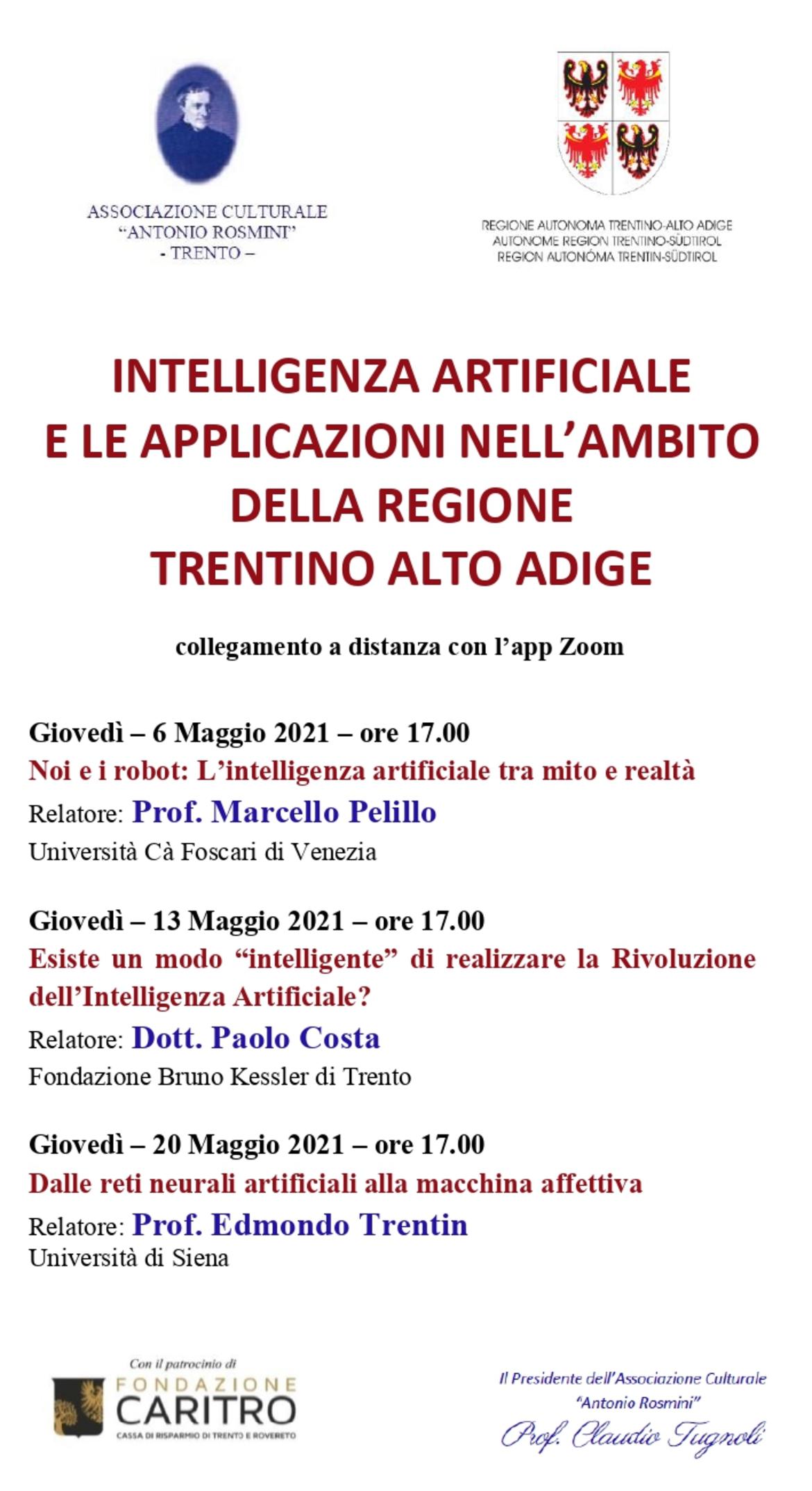 Comunichiamo che, data la situazione sanitaria sommamente incerta, le conferenze presso l’Associazione culturale “Antonio Rosmini” riprenderanno con il collegamento a distanza via Zoom.