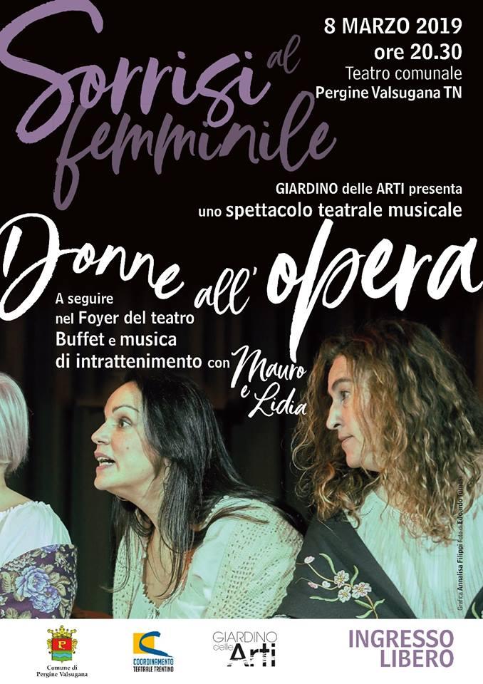 L'ensemble vocale femminile Giardino delle Arti presenta l'8 marzo al Teatro di Pergine e in replica il 9 marzo al teatro comunale di Gries (BZ) lo spettacolo teatrale musicale "Donne all'opera", un viaggio nel variegato mondo femminile raccontato attraverso i cori d'opera e i testi originali di Luisa Pachera.