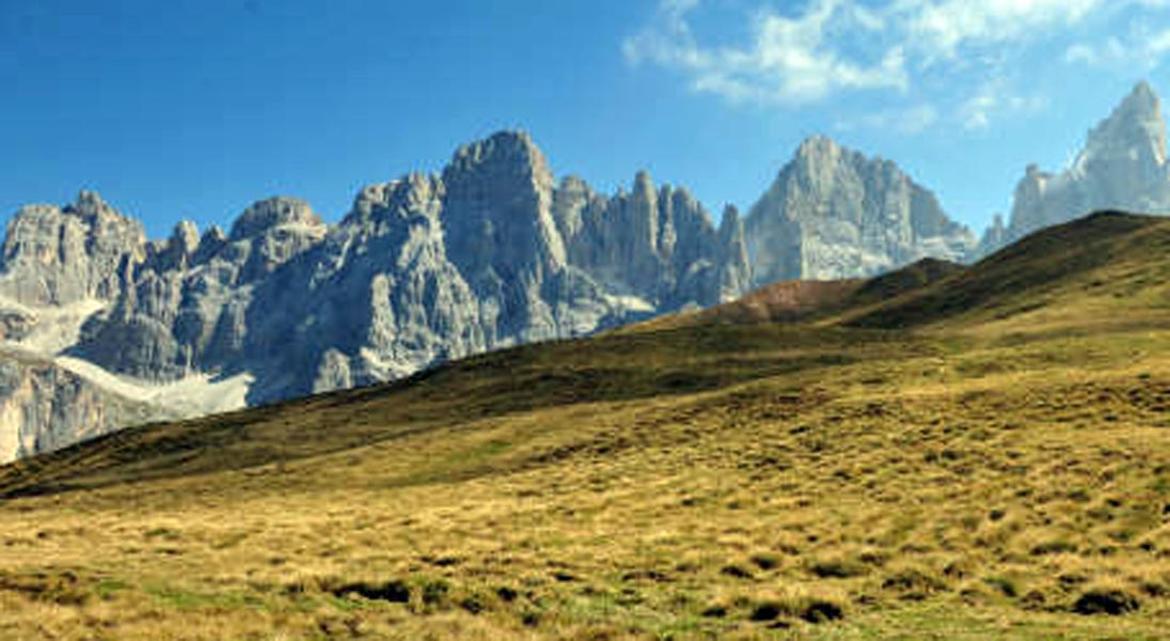 Da Passo Rolle (quota 1984) seguendo un percorso su pascoli di interesse botanico e geologico si giunge a Baita Segantini (quota 2170) vista sulla catena settentrionale delle Pale di San Martino.
