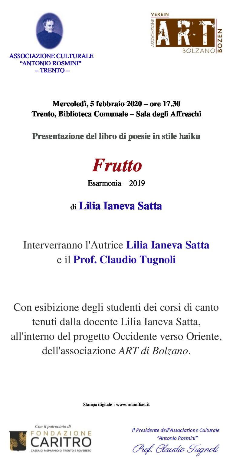 Presentazione del libro di poesie in stile haiku "Frutto" Esarmonia – 2019