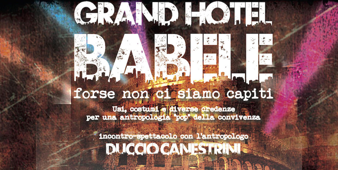 Homo sapiens è egoista o solidale? Non accettare credenze e comportamenti diversi è naturale? Miti e religioni uniscono o dividono? Integrazione o disintegrazione? L'antropologo Duccio Canestrini sarà protagonista della conferenza-spettacolo pubblica intitolata “Grand Hotel Babele”. Al centro della proposta, una riflessione sul tema della convivenza fra gruppi culturali diversi, sull'accoglienza dei migranti nella storia e nelle diverse civiltà, sulla società interculturale, sul rapporto con gli “altri” e sulla formazione degli stereotipi e dei pregiudizi.