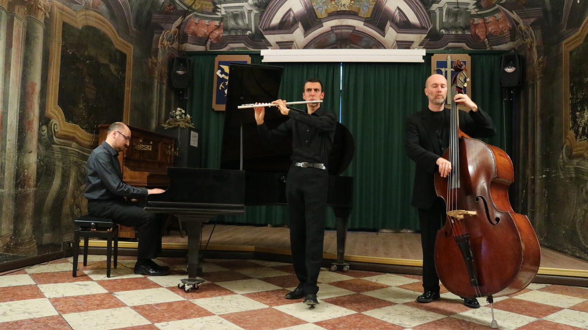 con Fabrizio Crivellari al flauto, Peter Lanziner al contrabbasso e Edoardo Bruni al pianoforte