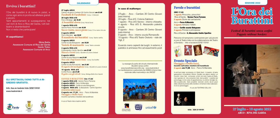 Burattini, marionette, pupazzi, circo-teatro, clownerie, teatro di figura: dal 27 luglio al 10 agosto la 25ª edizione del festival organizzato dai Comuni di Arco e di Riva del Garda (per la cura della compagnia teatrale Iride), il cui nome è un gioco di parole che allude all'Òra, il vento stagionale del Garda, propone nelle piazze di Arco, Riva del Garda e di tante frazioni nove spettacoli, dei quali quattro preceduti da «Favole e burattini», percorso di narrazione e animazione per i più piccoli, a cura della compagnia Iride in collaborazione con Teatro a Dondolo. E un evento speciale: un omaggio al grande Otello Sarzi a cura di un suo allievo, Vittorio Zanella.