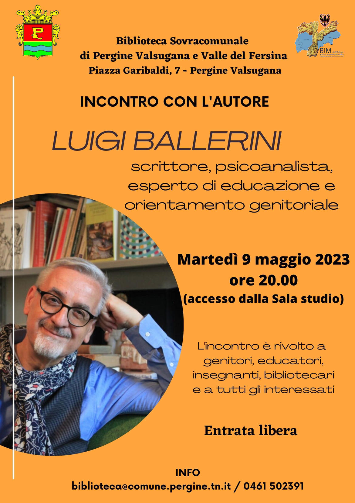 Per informazioni: telefono 0461-502391, mail: biblioteca@comune.pergine.tn.it
