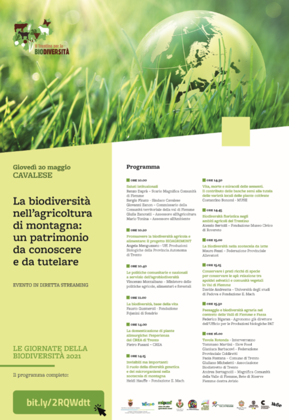 Il convegno di Cavalese fa parte del progetto Bioagrimont, "Biodiversità agraria e alimentare associata alle produzioni agricole e zootecniche di montagna, conservazione e tutela del paesaggio agrario”, promosso dalla Provincia in collaborazione con Fondazione Edmund Mach, Muse, CREA, Museo Civico di Rovereto, e finanziato dal Ministero delle politiche agricole alimentari e forestali, per preservare la biodiversità agricola e alimentare.