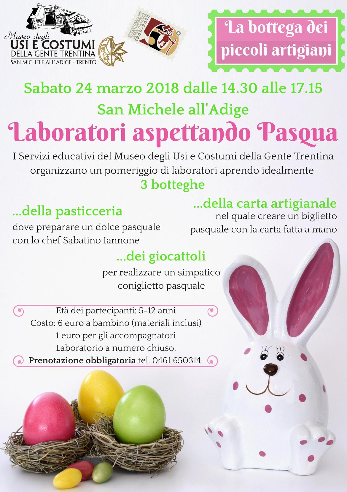 Laboratorio a numero chiuso. Prenotazione obbligatoria tel. 0461 650314