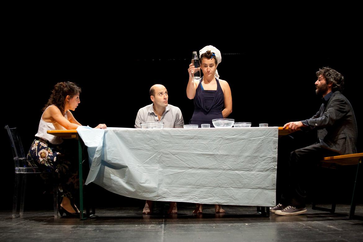Molti racconti si sono ridotti a una parola o un gesto, altri hanno contribuito a definire meglio i singoli ruoli (padre, madre, figlio, ‘agente esterno’), altri ancora sono serviti come struttura portante dell’intera drammaturgia, e mi riferisco a Il colombre e a I sette piani: il primo è stato fondamentale per mettere a fuoco le relazioni fra i personaggi (che spesso abbiamo preferito chiamare caratteri, energie o entità); il secondo per sottolineare l’inevitabile declino che chiunque subisce a causa del ‘macina uomini’, ovvero il tempo, come era solito definirlo Buzzati. In tutto questo processo, la difficoltà maggiore è stata quella di non definire, di lasciare i contorni sfocati, di aprire le molteplici visioni – spesso contraddittorie – della realtà: gli stessi ruoli/personaggi che si andavano creando, reclamavano in ogni momento la loro libertà e noi, volontariamente, abbiamo evitato di dare loro un nome o una definizione. Lo stesso vale per qualsiasi elemento scenografico, costume o luce: tutto arriva sul palcoscenico con la semplicità del quotidiano, con la volontà di provocare nello spettatore nuove fantasie del reale. Il risultato è uno spettacolo che vuole omaggiare Buzzati non tanto con le parole dei racconti (che senza dubbio hanno maggior vigore e capacità evocativa su carta stampata) quanto attraverso la reinvenzione della realtà da cui quelle parole sono nate. A mio avviso, chi conosce i testi di Buzzati potrà riconoscere e ricostruire, come in un puzzle, i frammenti della vita e della poetica dell’autore; chi non conosce i racconti, invece, avrà modo di vedere il complesso e variegato processo di crescita e formazione di un essere umano, nelle cui contraddizioni, assurdità, paure, angosce, idiosincrasie potrà facilmente specchiarsi. E magari ridere di sé.