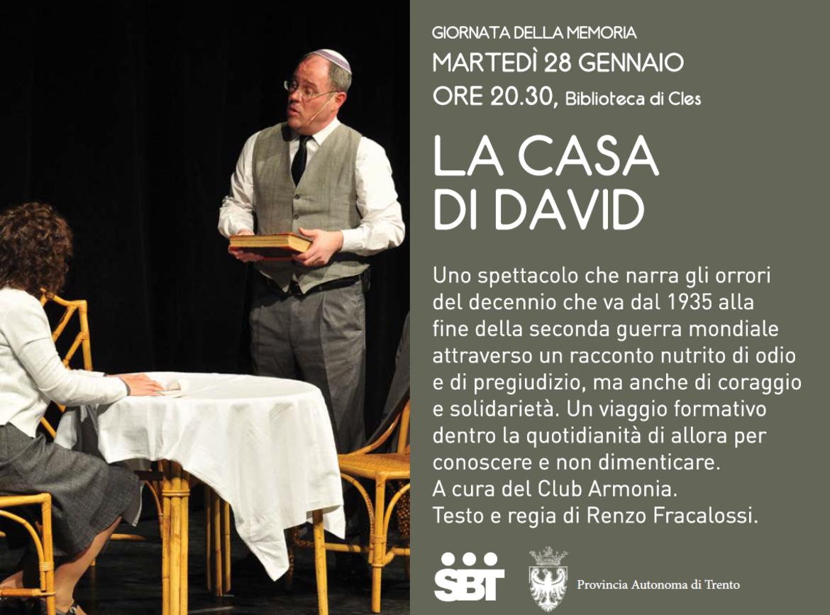 È in questa narrazione che prende forma l’atto unico La casa di David, un racconto di fantasia (ma non troppo), contestualizzato nel periodo di massimo consenso del fascismo e poggiato su di una solida conoscenza degli avvenimenti succedutisi nel nostro Paese durante il decennio che va dal 1935 alla fine della seconda guerra mondiale.