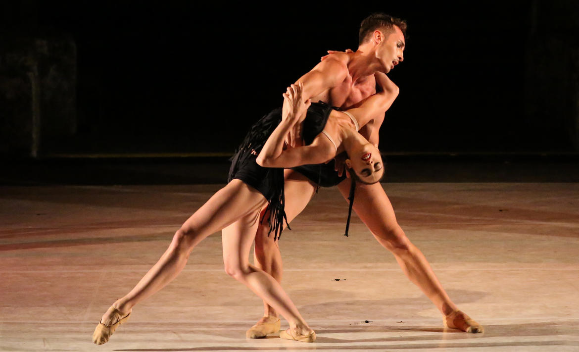 La serata si apre con la coreografia di Adriana Mortelliti su celebri canzoni francesi. Intramontabili ed indimenticabili successi di Edith Piaf, Jacques Brel, Yves Montand e, soprattutto, Charles Aznavour cui il tour è dedicato, sono magistralmente interpretati dai danzatori dell'ensamble che “raccontano” le storie di tutti i giorni. E cosi ci si diverte, ci si stupisce e soprattutto ci si emoziona nel crescendo coreografico che culmina in Dans te bras di Aznavour. Un sottofondo musicale inconfondibile anticipa la seconda parte, il celeberrimo Bolero di Ravel. Corpi sinuosi prendono vita sul coinvolgente ritmo ossessivo che trascina in quel mondo di seduzione di cui il brano del compositore francese è simbolo.