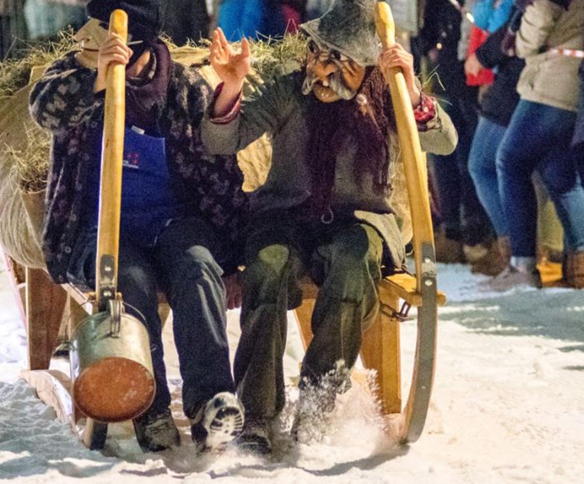 Sfilata di carnevale sulle slitte ("leses" in lingua ladina), spettacolo di sci e fiaccolata lungo Strèda Roma e Piaz G. Marconi, con la partecipazione della scuola di sci Marmolada di Canazei, del "Grop de la Mèscres de Cianacei e Gries" e altri gruppi.