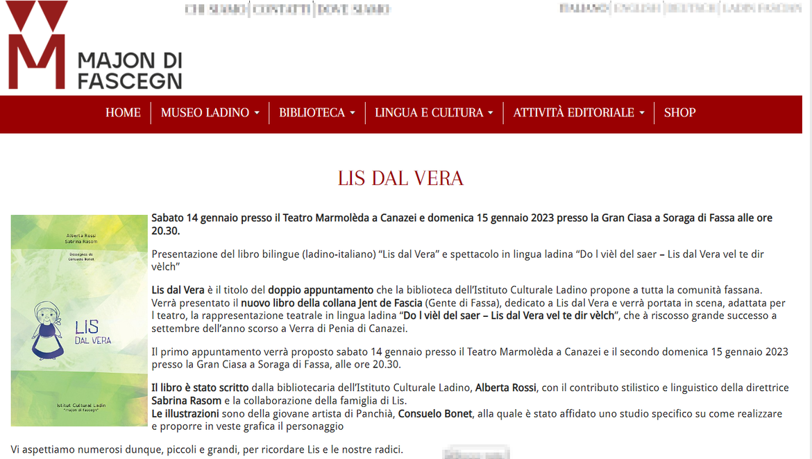 Il libro è stato scritto dalla bibliotecaria dell’Istituto Culturale Ladino, Alberta Rossi, con il contributo stilistico e linguistico della direttrice Sabrina Rasom e la collaborazione della famiglia di Lis.