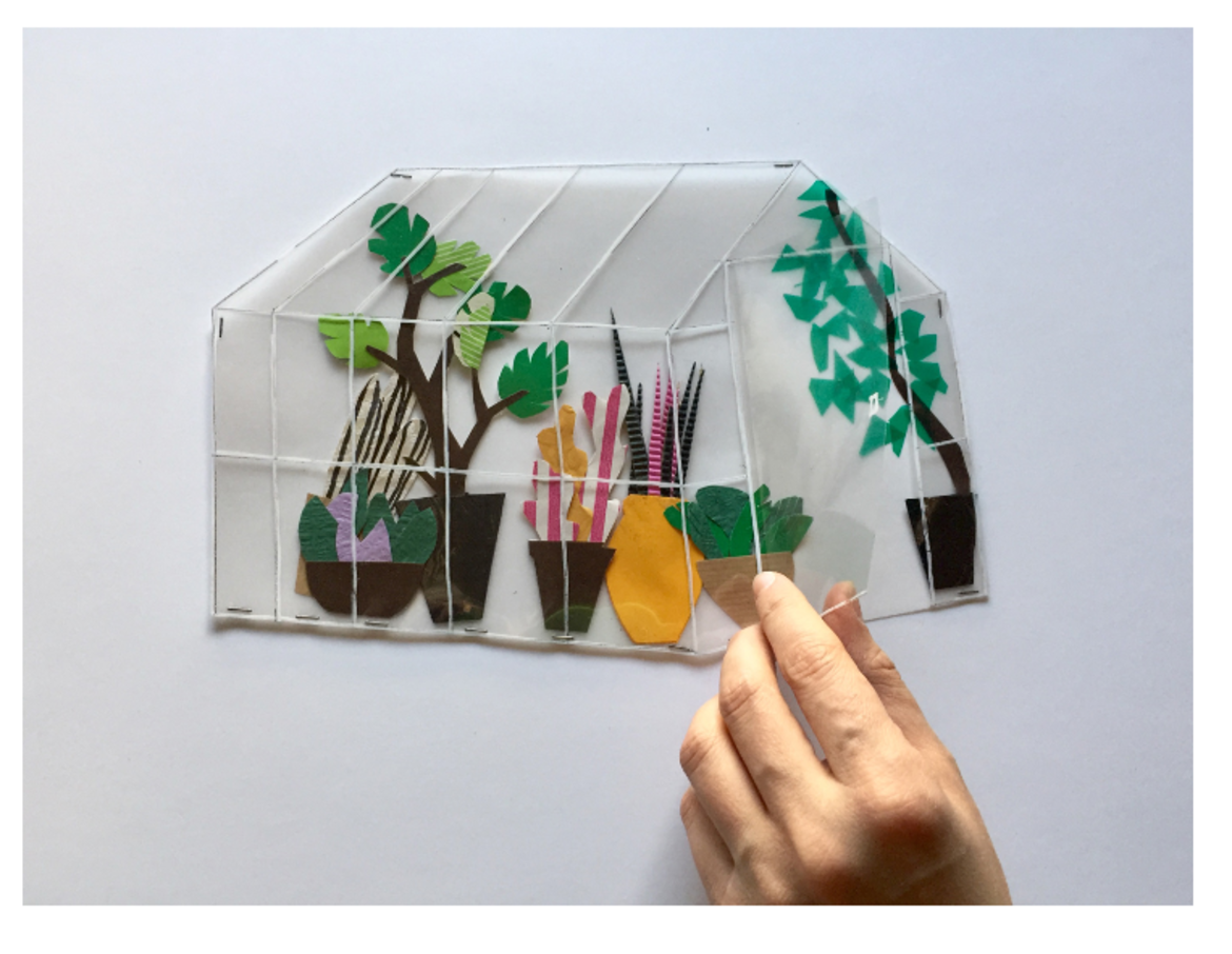 Questo laboratorio, ispirato alle miniature di carta dell’artista Tara Galuska, propone la creazione di un piccolo giardino fatto con carte multicolori all'interno di una busta a forma di serra.