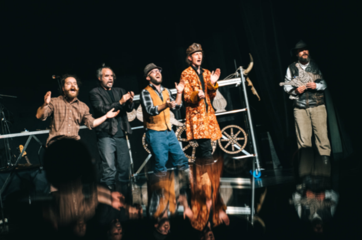 La leggenda slovena incontra 5 attori, la musica e un mucchio di oggetti. Fanno a pezzi la storia e la ricreano sotto forma di concerto, commedia giocosa, teatro degli oggetti e passaggi improvvisati. è una fusione inclusiva, dove gli attori incontrano le marionette, dove il rock incontra il folk, il postmodernismo incontra la tradizione e dove il pubblico diventa parte del bar “Pr Tauzlu”.