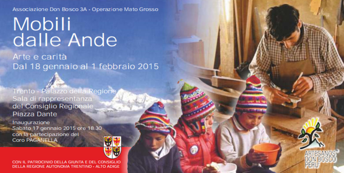 L'Associazione Don Bosco 3A - Operazione Mato Grosso invita all'inaugurazione della mostra "Mobili dalle Ande - Arte e carità" aperta dal 18 gennaio al 1 febbraio 2015