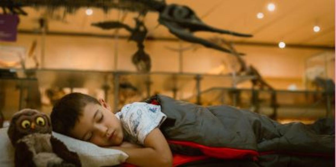 l'emozione di trascorrere un'intera notte tra avventure e spettacoli scientifici e infine coricarsi tra orsi, leoni, dinosauri e balene.