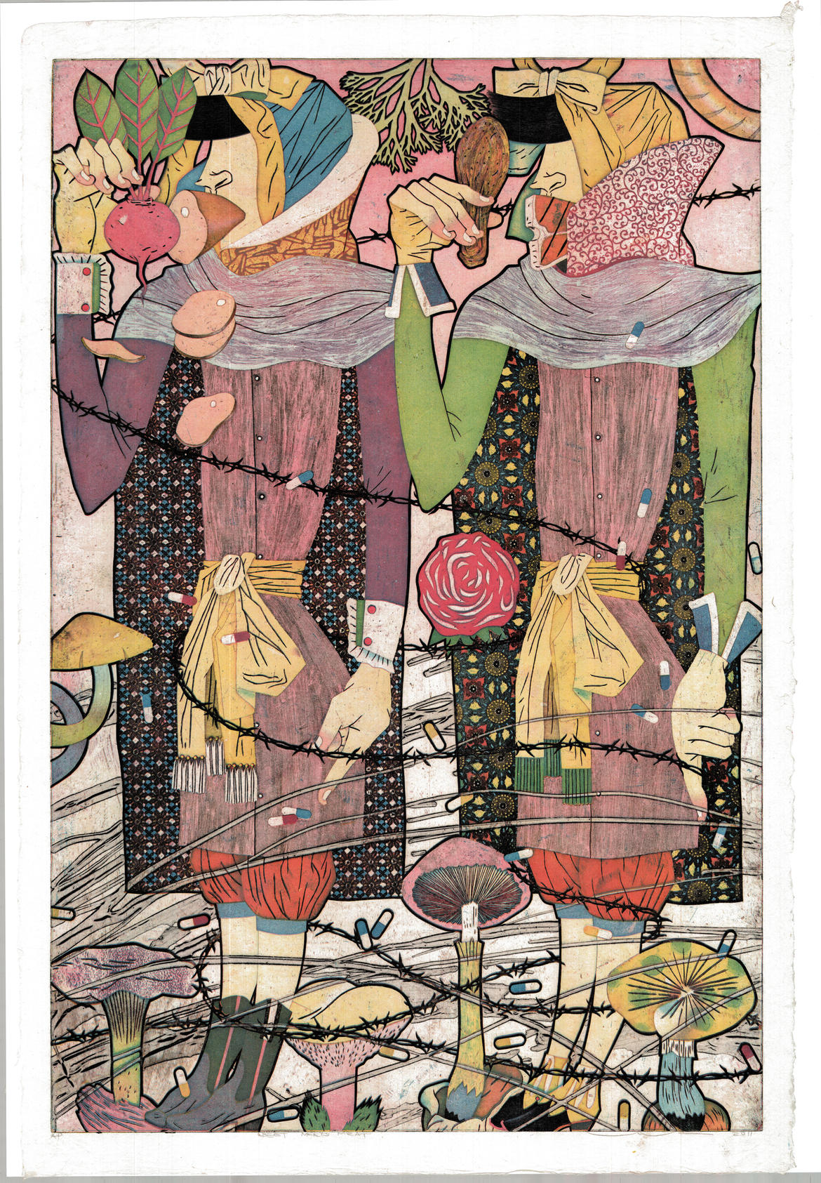 La sua è una tecnica che richiede estrema pazienza e precisione: i vivaci e numerosi colori che utilizza necessitano infatti di diverse matrici, anche fino a cinque per un lavoro. «Cerco sempre di indagare il massimo potenziale a mia disposizione come incisore» spiega Yuji Hiratsuka, perché è proprio nella tecnica che si basa l’interesse dell’artista, attento a indagarne ogni massimo potenziale per poi farsi sorprendere dal risultato finale.