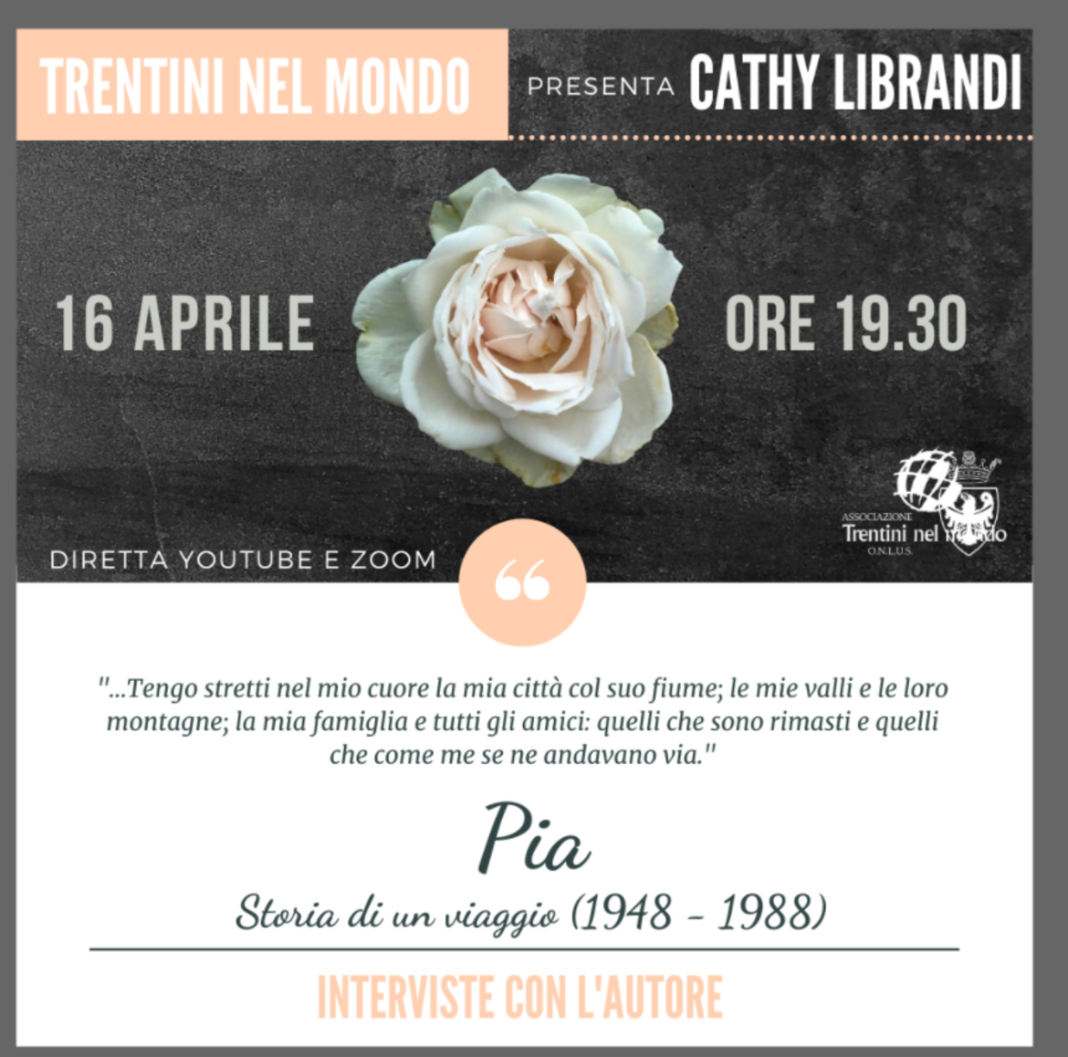 Andiamo a conoscere meglio "PIA, storia di un viaggio". Incontriamo l'autrice e tuffiamoci nelle pagine di questo racconto di vita. Ti aspettiamo su zoom e youtube
