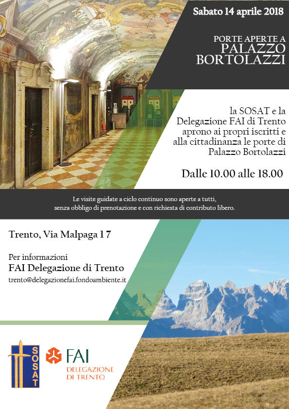 La Sosat e la Delegazione FAI di Trento aprono ai propri iscritti e alla cittadinanza le porte di Palazzo Bortolazzi
