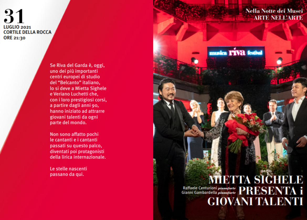Se Riva del Garda è, oggi, uno dei più importanti centri europei di studio del “Belcanto” italiano, lo si deve a Mietta Sighele e Veriano Luchetti che, con i loro prestigiosi corsi, a partire dagli anni 90, hanno iniziato ad attrarre giovani talenti da ogni parte del mondo.
