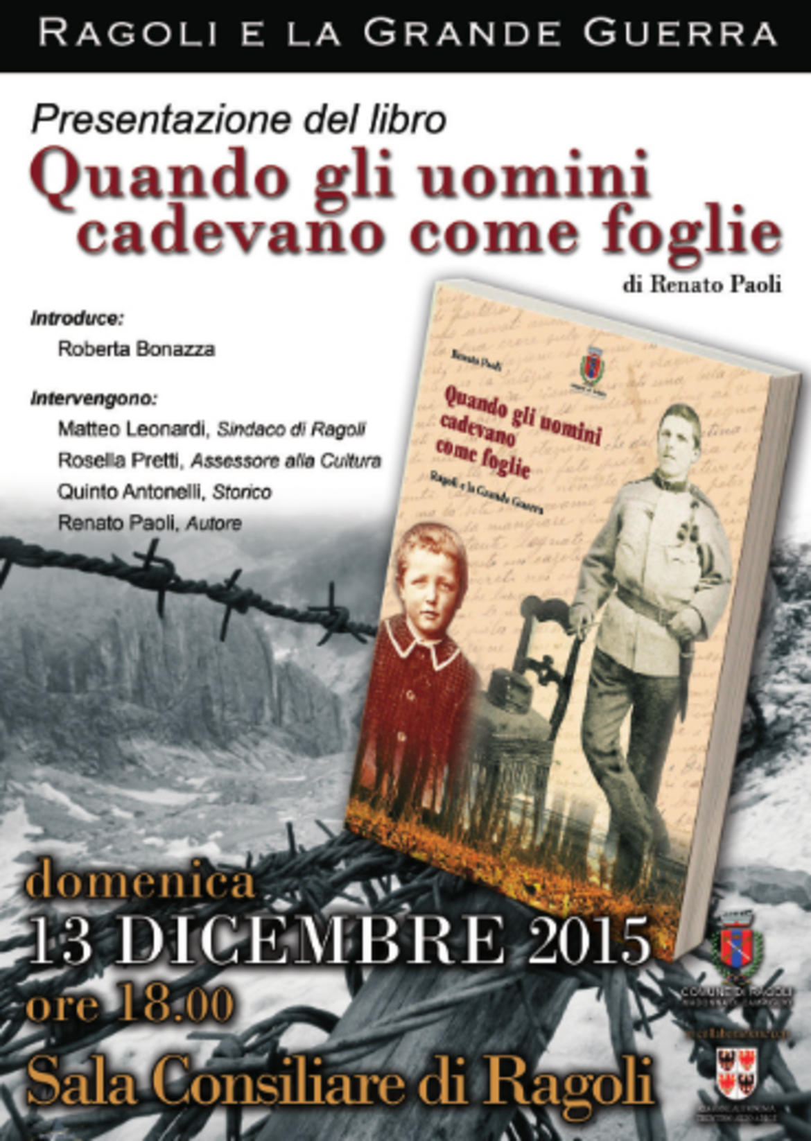 É quello che ho cercato di fare nelle pagine di questo libro. Sono ventinove i caduti di Ragoli nella Grande Guerra: giovani uomini costretti, cento anni fa, a lasciare improvvisamente la loro vita, la loro famiglia, le loro aspirazioni. Ventinove voci da riascoltare, ventinove volti da riconoscere. Non di tutti la voce o il volto ci sono stati restituiti dalle fonti e dai documenti. Di tutti, però, ho voluto raccontare, anche se per frammenti, la storia. Sono microstorie di uomini comuni - contadini, operai a giornata, arrotini, vetturali, artigiani - costretti loro malgrado a diventare soldati. Uomini il cui sacrificio estremo ha causato un dolore incolmabile nelle loro famiglie e nella comunità e il cui ricordo è stato reso difficile dalle nuove circostanze politiche, determinate dall’esito del lungo conflitto. La ricostruzione delle loro vite e della loro morte - anche quando ho dovuto colmare qualche lacuna documentaria, fornendo solo delle supposizioni - è un modo per restituire loro la dignità di cui la guerra li ha privati.