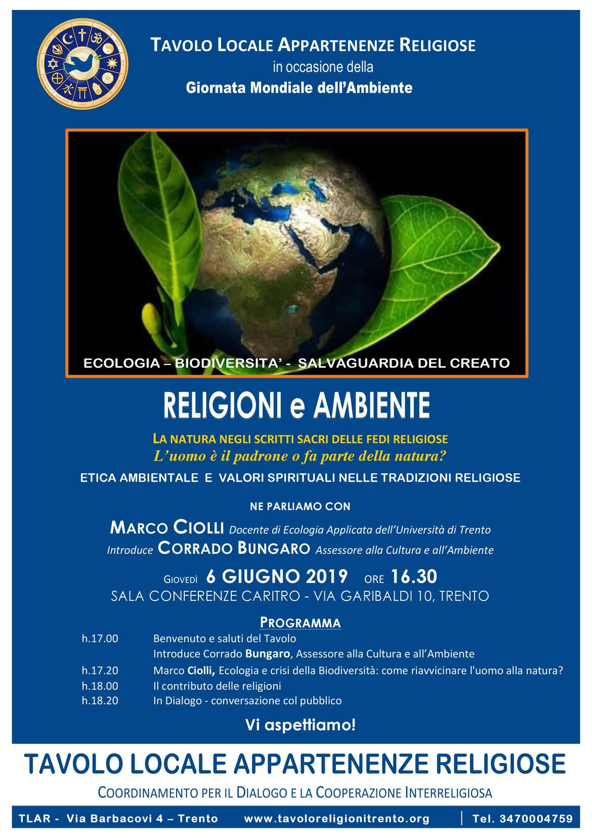 in occasione della Giornata Mondiale dell'Ambiente il Tavolo locale delle Appartenenze religiose promuove un incontro con la cittadinanza.