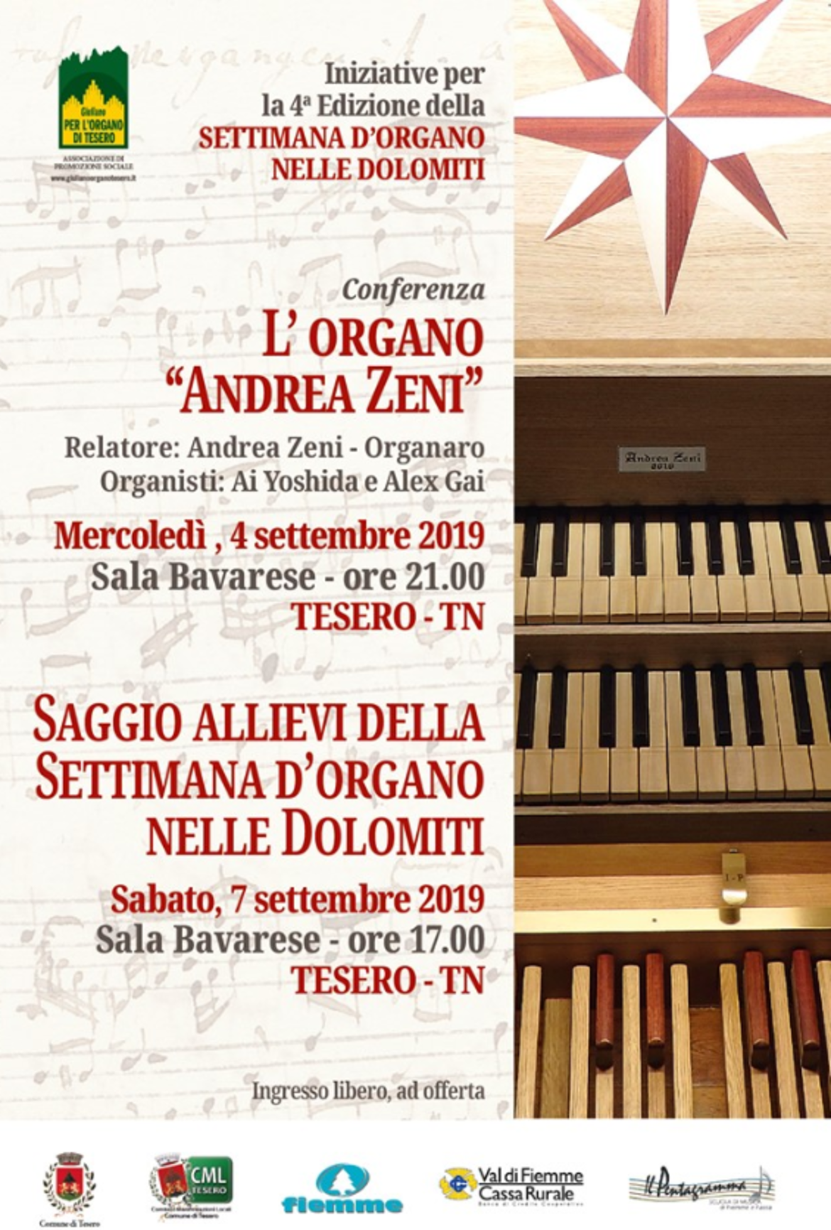Nell'ambito della Settimana d'Organo nelle Dolomiti, arrivata alla quarta edizione, l'Associazione Giuliano per l'organo di Tesero ha organizzato due eventi a cui tutti sono invitati tutti, soci e non.