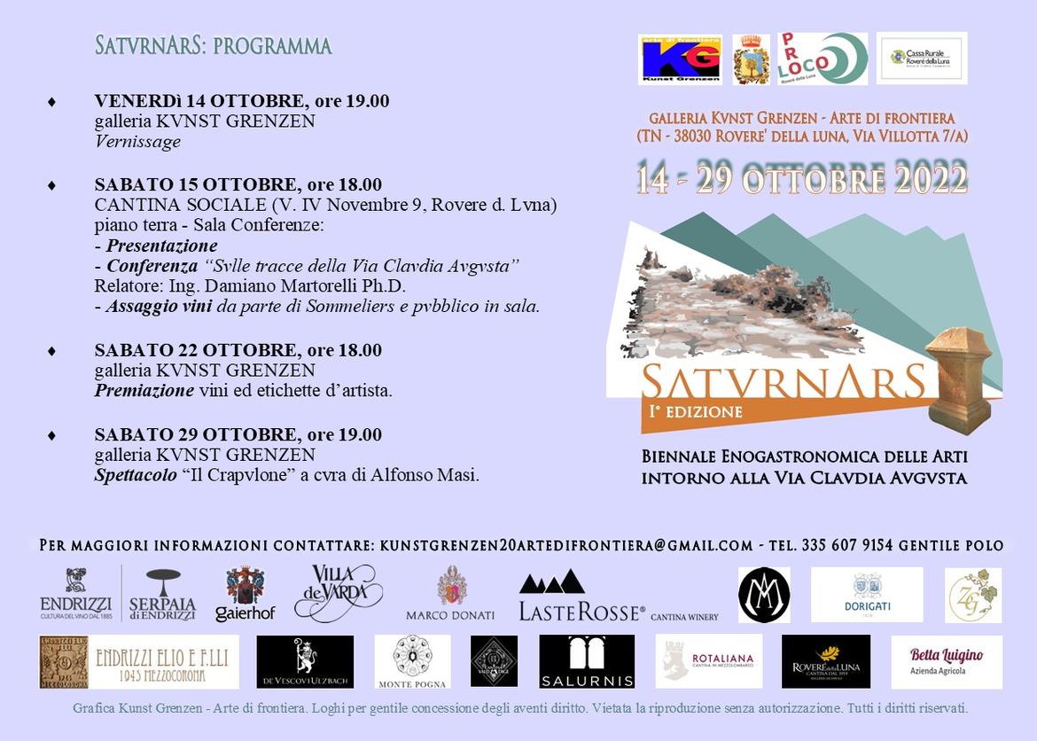 SaturnArs | Biennale enogastronomica delle Arti intorno alla Via Claudia Augusta - 1° edizione