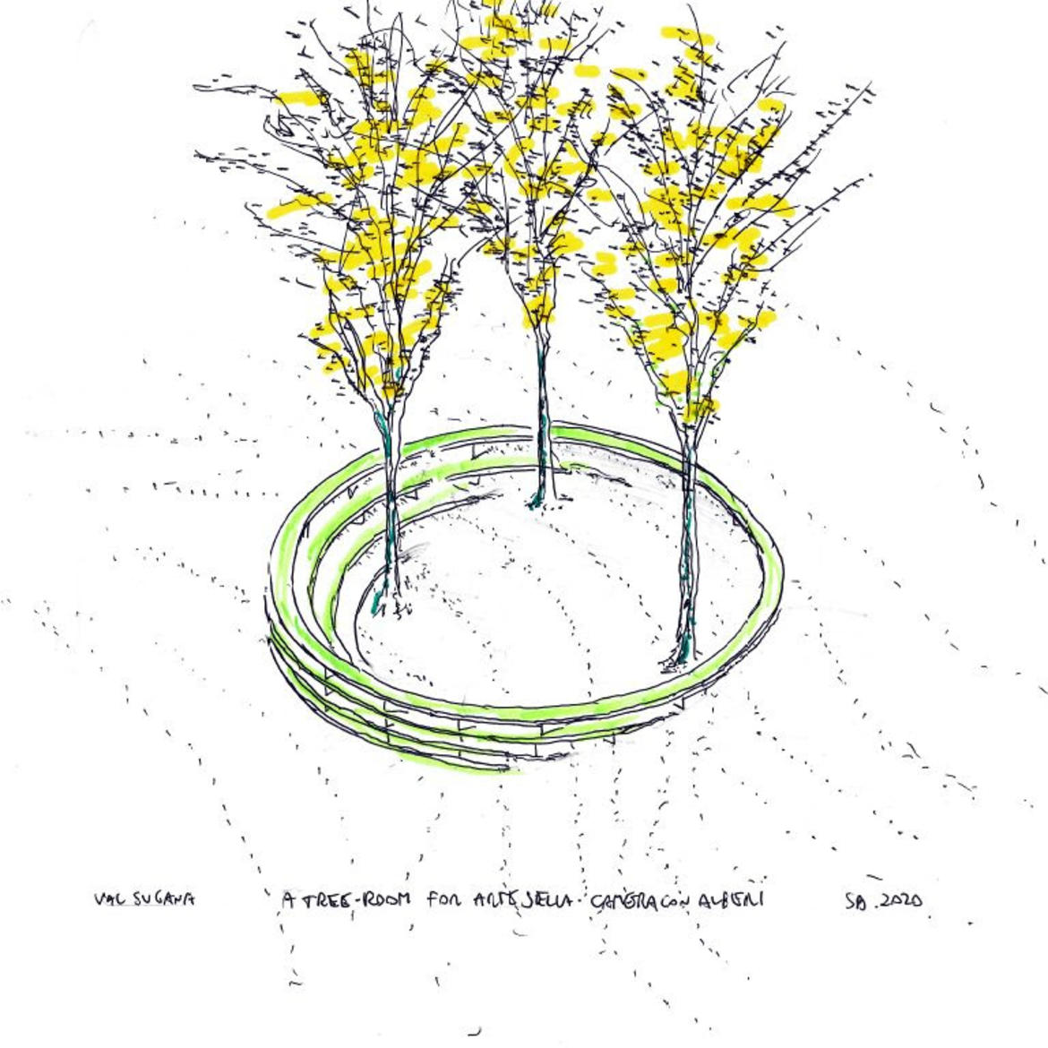 Ore 11.00 Inaugurazione dell'installazione Tree-Room/ Camera con alberi presso il giardino di Villa Strobele, a cui è possibile partecipare con il biglietto d'ingresso delle aree espositive di Arte Sella.
