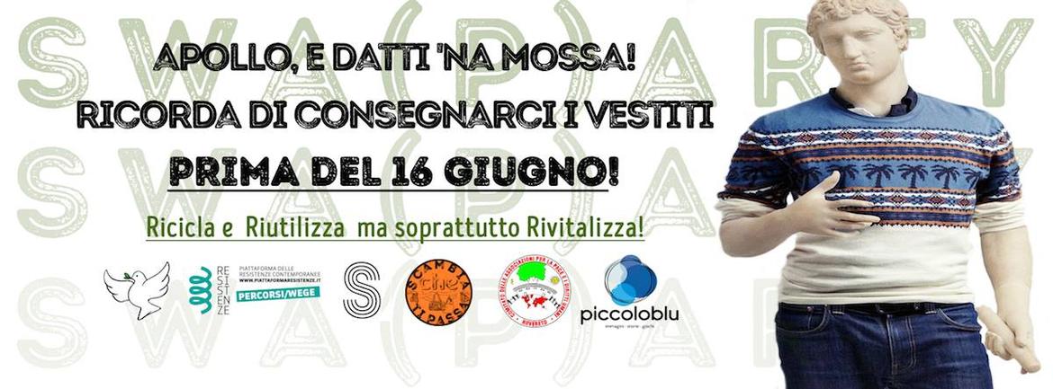 Cosa aspetti? Dai nuova vita al tuo guardaroba... senza sprechi con lo “SWAP PARTY”. L’evento curato dall’Associazione Progetto Colomba Onlus vedrà all'interno del pomeriggio il simpatico LABORATORIO PER BAMBINI con Beatrice Lorenzini di "Mon Pastel".