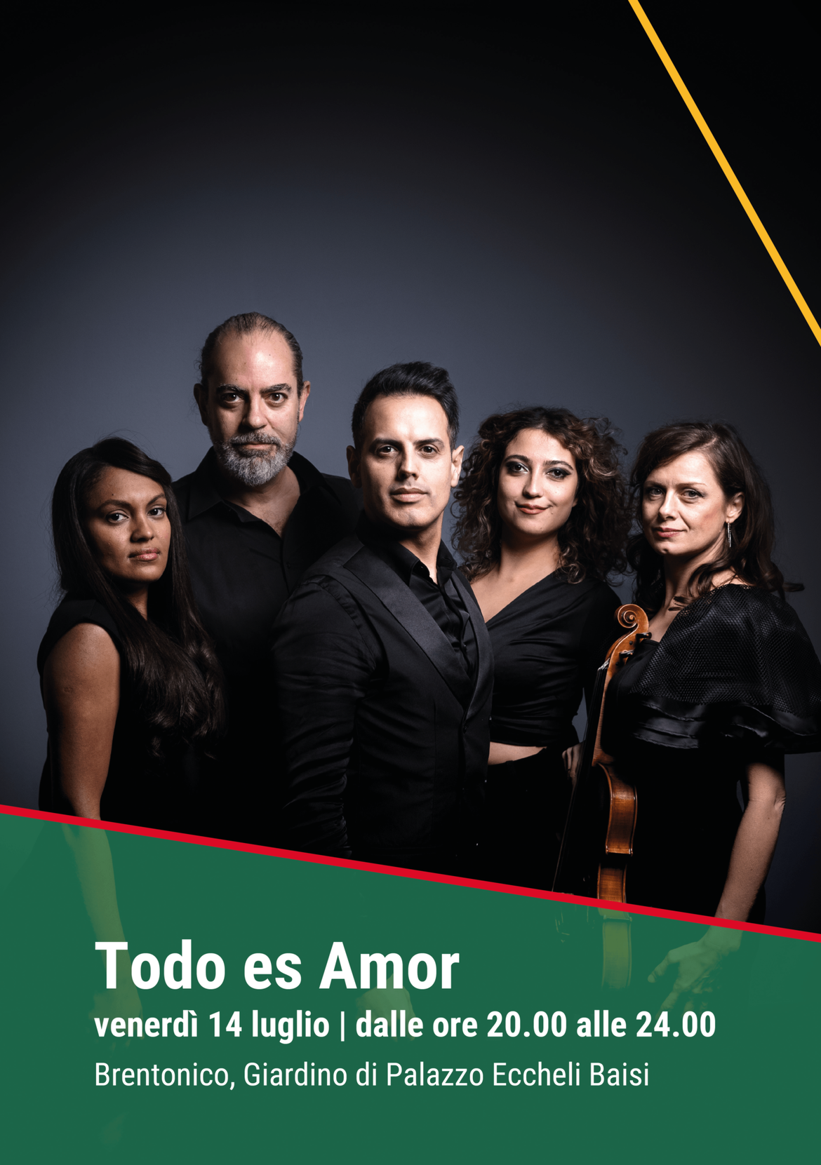 Il suggestivo scenario del Giardino di Palazzo Eccheli Baisi a Brentonico per l’occasione diventerà una milonga sotto le stelle: Todo es Amor è la serata di tango che avrà ospite la Tango Spleen Orquesta, punto di riferimento internazionale nel mondo del tango, e Carlo Carcano, musicalizador tra i più apprezzati e richiesti nel panorama italiano. La musica sensuale del tango sarà occasione di ascolto, ballo per chi è già esperto ma anche occasione di prova per chi vuole muovere i primi passi, accompagnato dai maestri di Progetto Tango.
