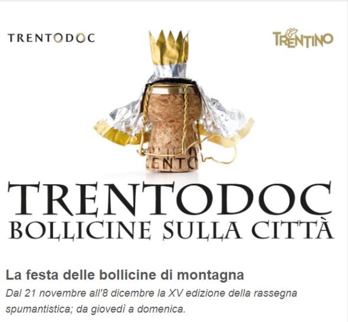 Dodici giorni di degustazioni della collezione delle bollicine di montagna 2019: dal 21 novembre all'8 dicembre, da giovedì a domenica. Saranno disponibili oltre 80 etichette in rappresentanza di 50 case spumantistiche. Inoltre: menù a tema nella cucina di Palazzo Roccabruna (giovedì e sabato), aperitivi nei locali cittadini con le bollicine abbinate alle specialità gastronomiche trentine (Happy Trentodoc) e degustazioni in cantina là dove le bollicine nascono (Trentodoc in cantina).