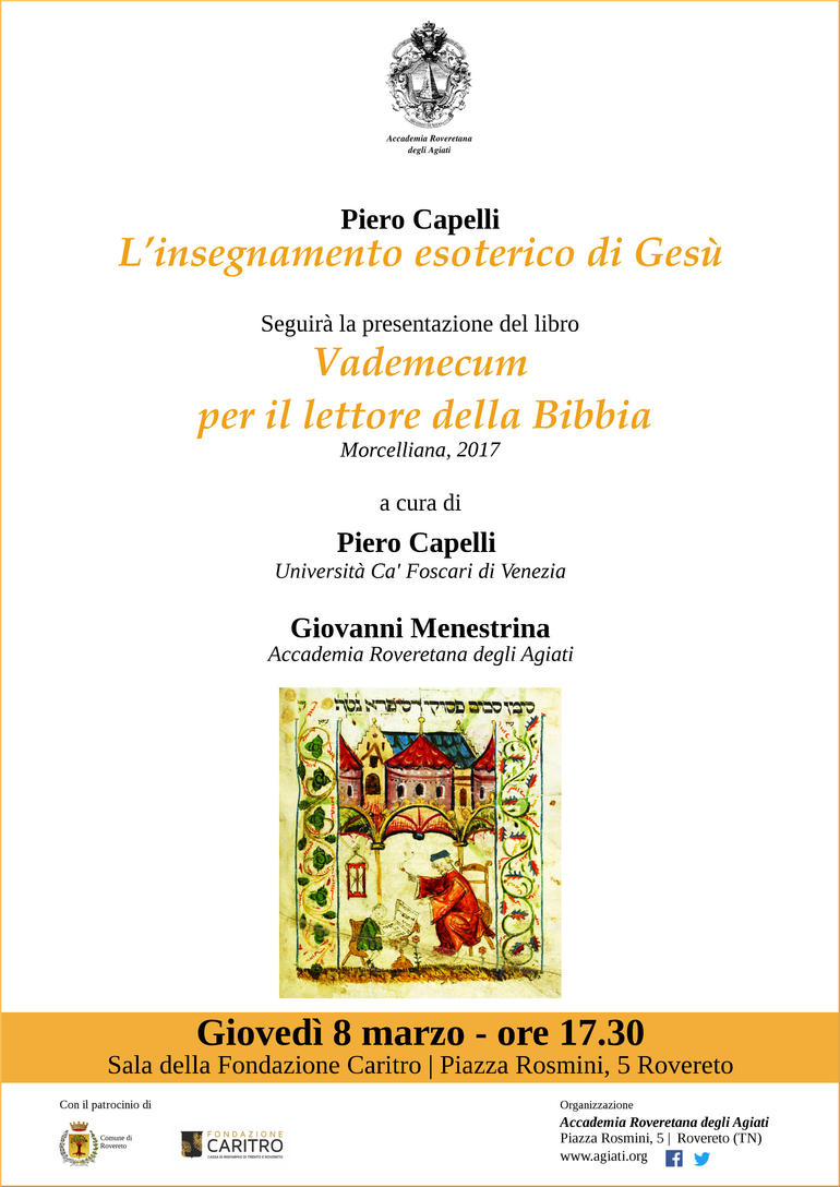 - Seguirà la presentazione del volume: Vademecum per il lettore della Bibbia a cura di Piero Capelli e Giovanni Menestrina.