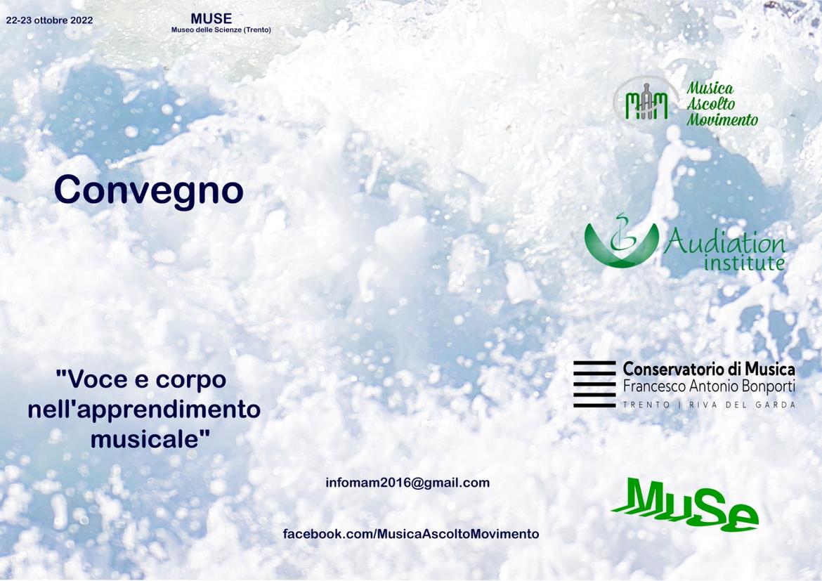 Voce e corpo nell’apprendimento musicale, l’evento organizzato da MAM Musica Ascolto Movimento con il patrocinio di Audiation Institute e Conservatorio di Musica F. A. Bonporti si terrà al MUSE - Museo delle Scienze con lo scopo di indagare il ruolo della voce e del corpo nell’apprendimento musicale.