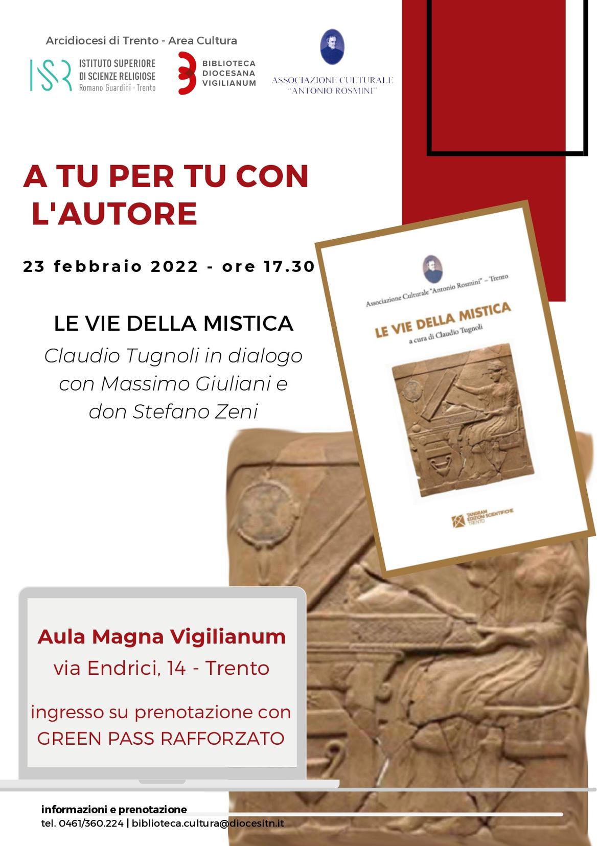 Claudio Tugnoli, curatore del libro "Le vie della mistica", dialogherà con uno degli autori dei contributi, Massimo Giuliani e con il direttore dell’ISSR “Romano Guardini”, don Stefano Zeni.