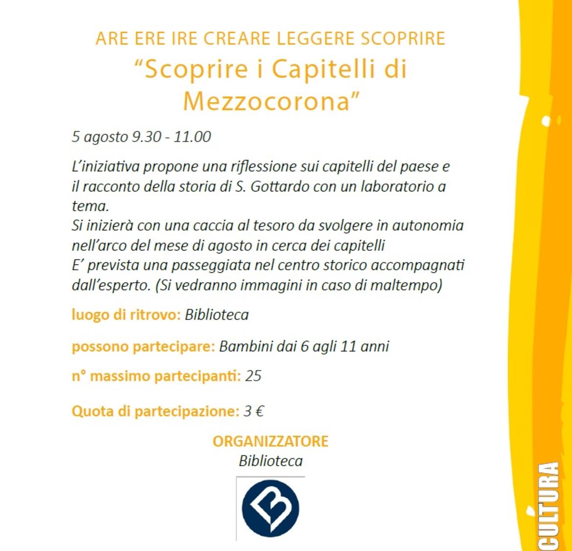 ARE ERE IRE CREARE LEGGERE SCOPRIRE. I capitelli di Mezzocorona