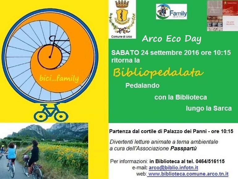Rassegna Arco Eco Day - Biciclettata lungo la Sarca con divertenti storie animate a tema ambientale a cura della società Passpartù. Partenza dal cortile di Palazzo dei Panni.