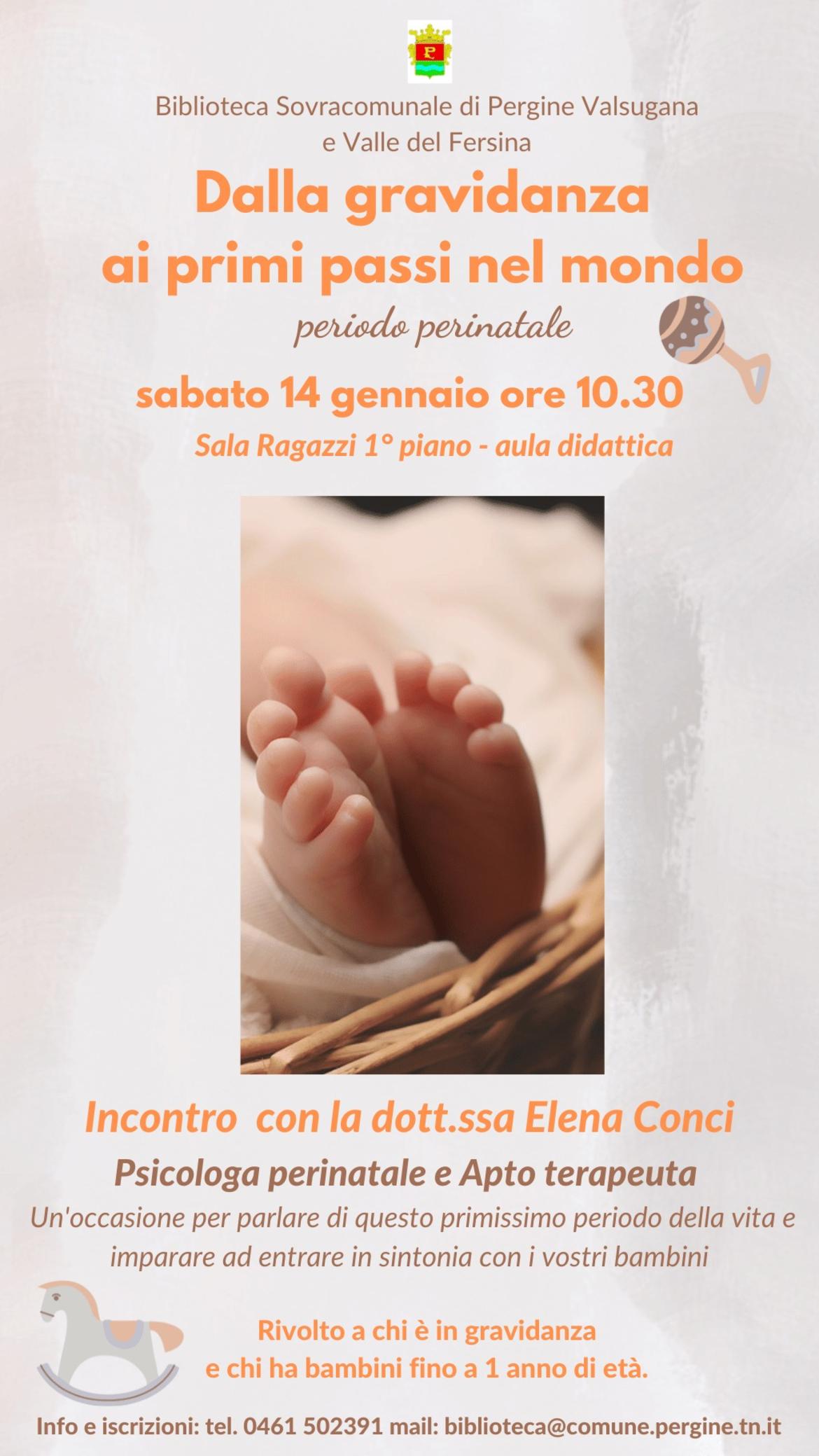 Sarà l'occasione per parlare con la dottoressa Elena Conci (psicologa perinatale, Apto-terapeuta) di questo primissimo periodo della vita e conoscere qualcosa che potrà aiutarvi a sintonizzarvi con il vostro bambino.