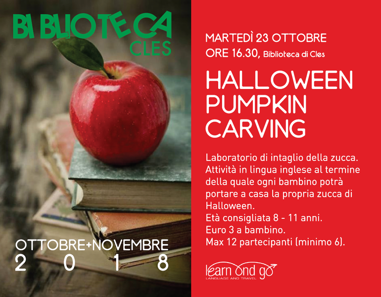 Attività in lingua inglese al termine della quale ogni bambino potrà portare a casa la propria zucca di Halloween.