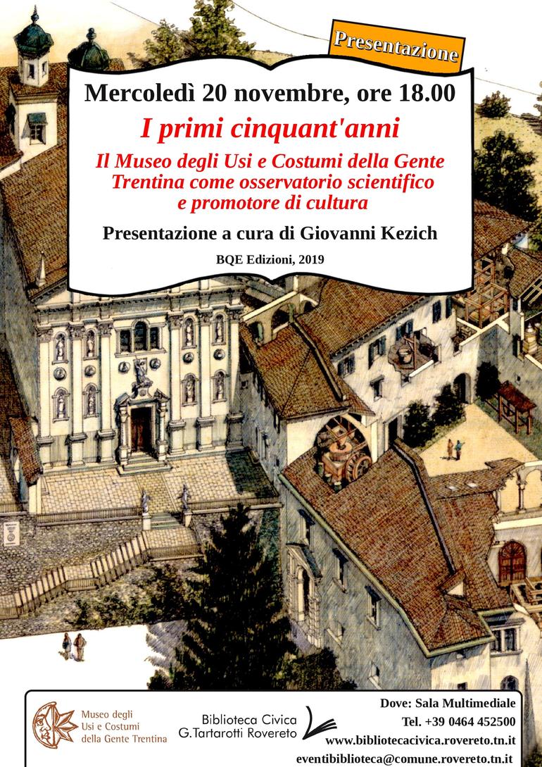 Il Museo degli Usi e Costumi della Gente Trentina, fondato nel 1968, ha compiuto nel 2018 il suo primo cinquantennio di attività. Il volume illustrato «I primi cinquant’anni 1968-2018» intende celebrarne la storia e la realtà attuale come istituto di conservazione etnografica e come percorso espositivo permanente, innanzitutto, ma anche come macchina culturale articolata, dedita alla ricerca scientifica, alla didattica, al dialogo con il territorio e a una promozione consapevole e attenta della cultura tradizionale del Trentino.
