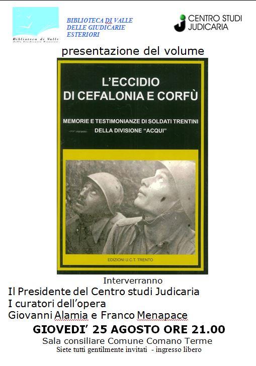 presentazione del volume L'Eccidio di Cefalonia: memorie e testimonianze di soldati Trentini della divisione “Acqui”