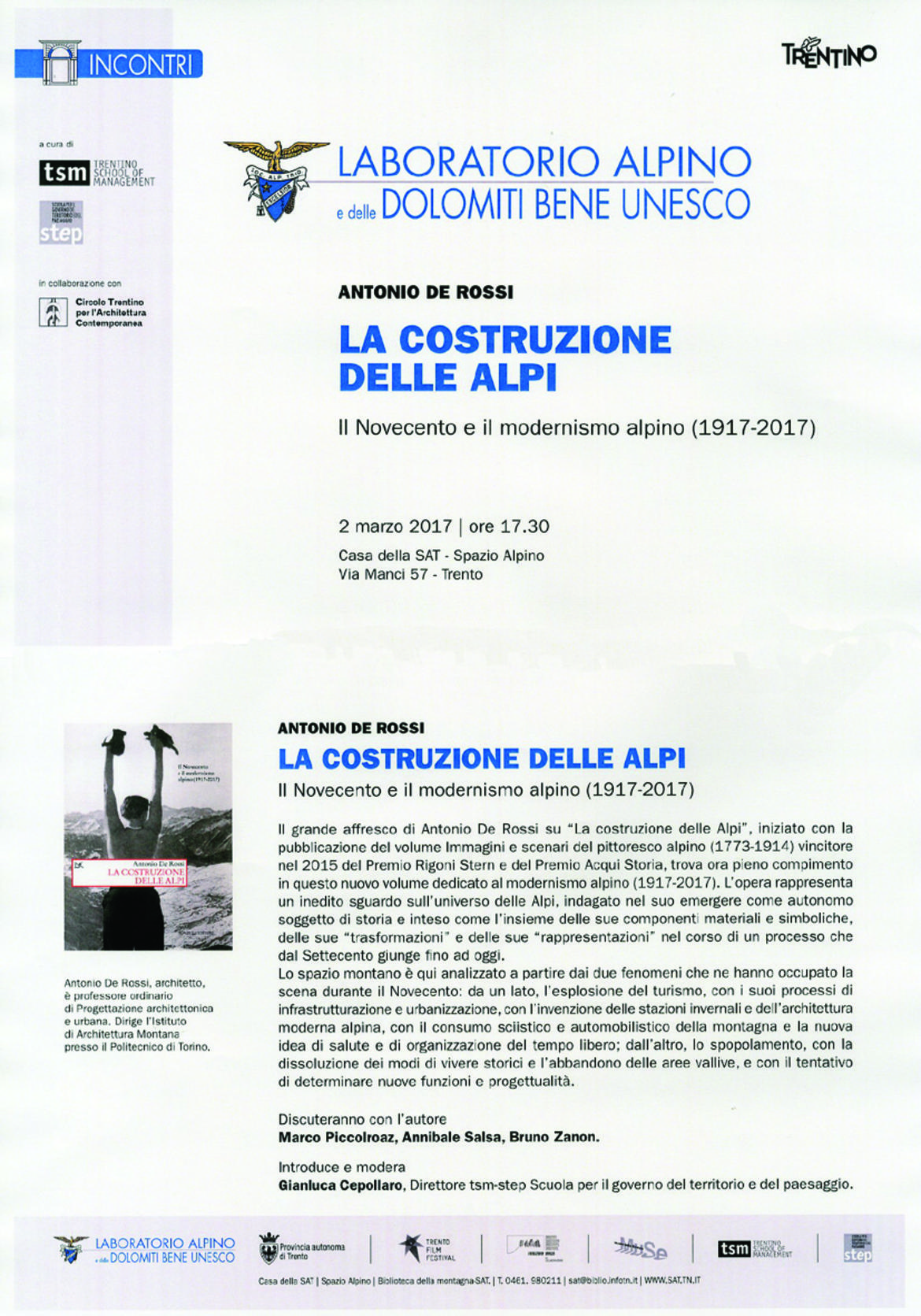 Presentazione alla presenza dell'autore, con interventi di Marco Piccolroaz, Annibale Salsa e Bruno Zanon. Introduce e modera Gianluca Cepollaro, direttore TSM-STEP.