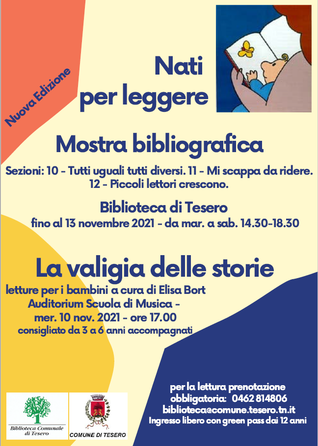 Sono le sezioni della Mostra bibliografica itinerante NATI PER LEGGERE n. 6 che saranno in biblioteca a Tesero fino a sabato 13 novembre 2021.