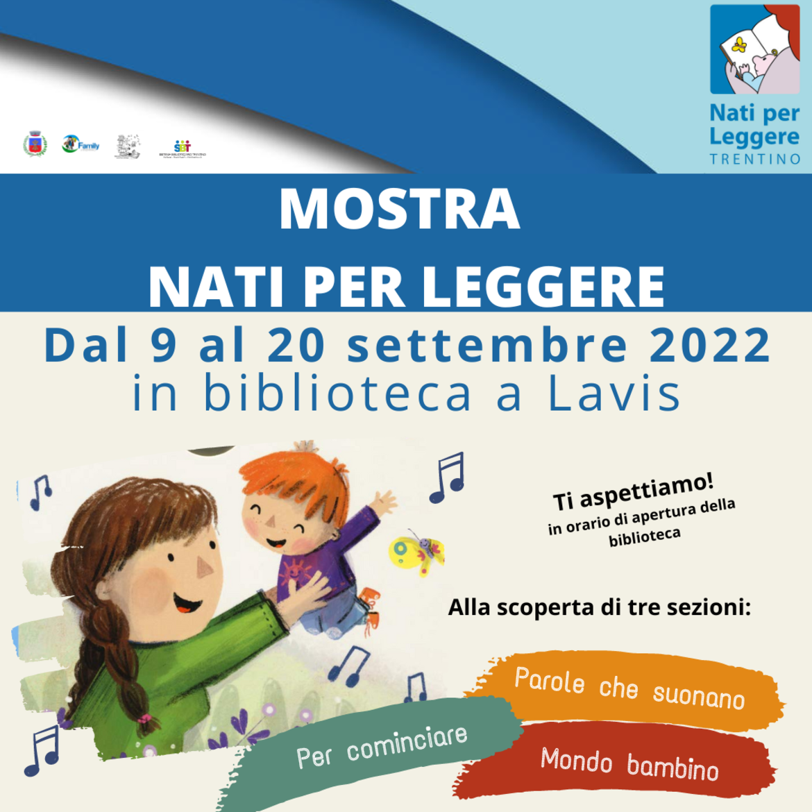 Dal 9 al 20 settembre la Biblioteca di Lavis e i Punti di lettura di Zambana e di Nave S.Rocco ospiteranno durante i loro orari di apertura la mostra dei libri delle sezioni "Per cominciare", "Parole che suonano" e "Mondo bambino" del progetto Nati per Leggere.